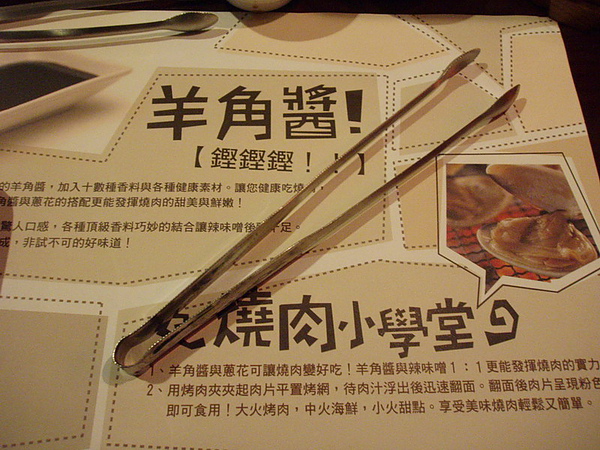 羊角的烤肉夾細長好拿,夾取食材的時候很穩當